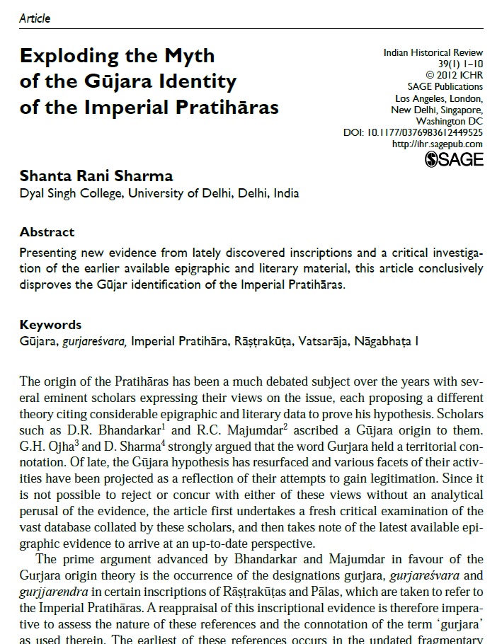 यह पुस्तक गुर्जर शब्द से जुड़े इतिहास पर है। पिछले कुछ दशकों से इस शब्द के मायनों पर बहुत कुछ कहा लिखा गया है। पर उसमें तथ्यों से कहीं अधिक मिथकों का समावेश है। परिणाम स्वरूप हमारी मुख्यधारा में उत्तर भारत के आधा दर्जन क्षत्रिय वंशों व उनके महापुरुषों की उत्पत्ति को लेकर गलत दावों का प्रसार चिंताजनक स्तर तक जा पहुँचा है। इतिहास से जुड़े पहचान व धरोहर के आयामों को लेकर देश की मुख्यधारा बहुत उद्वेलित रही है। इस सब के केंद्र में ये घर्षण है कि उत्तर भारत के अनेकों अग्रणी ऐतिहासिक राजवंशों, व उनके मुख्य व्यक्तित्वों की उत्पत्ति क्या थी। जैसे – मिहिरभोज प्रतिहार, पृथ्वीराज चौहान, अनंगपाल तोमर, आदि।